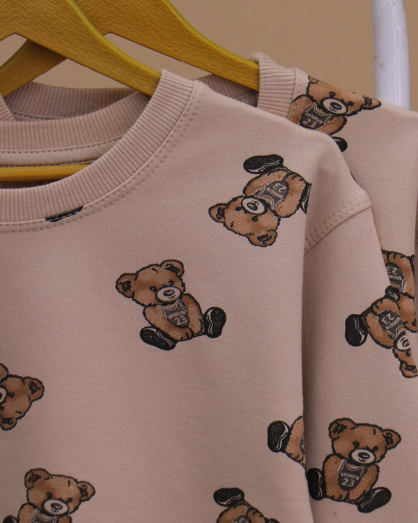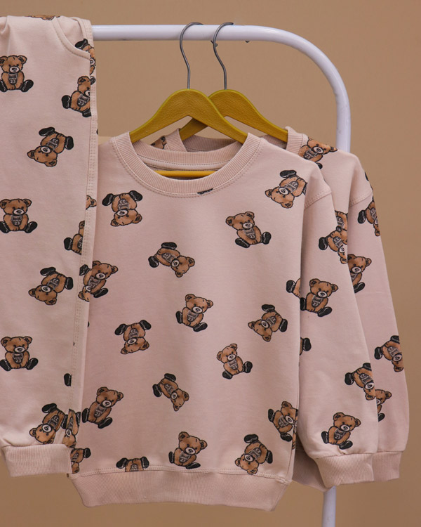 با این بلوز و شلوار جذاب خرس، فرزند شما حسابی بدرخشه! این ست با جنس نرم و لطیف پنبه، برای بازی و فعالیت های روزمره کاملاً مناسبه. طراحی شیک و جذاب این ست، با چاپ خرس زیبا، هم استایل کودک رو خاص میکنه و هم حس خوبی بهش میده. شما میتونید با این ست، همهجا با اعتماد به نفس و لبخند همراه باشید.