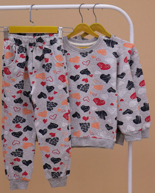 **بهترین انتخاب برای کودکتان: بلوز شلوار تمام چاپ قلب رنگی**